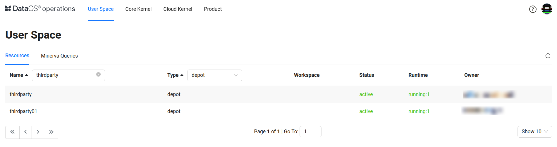 Navigate to User Space → Resources → types, select the Depot as type, and search for the Depot that needs to be monitored.