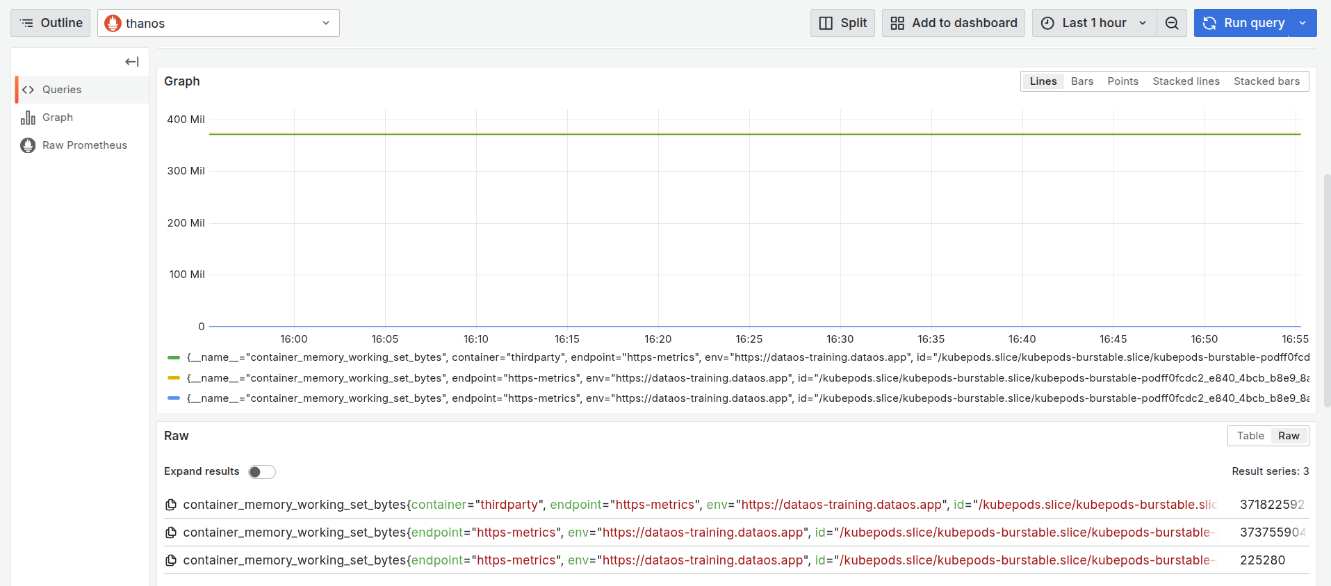 container_memory_working_set_bytesin the query explorer and select the pod name as the label filter of the corresponding Depot, and run the query.