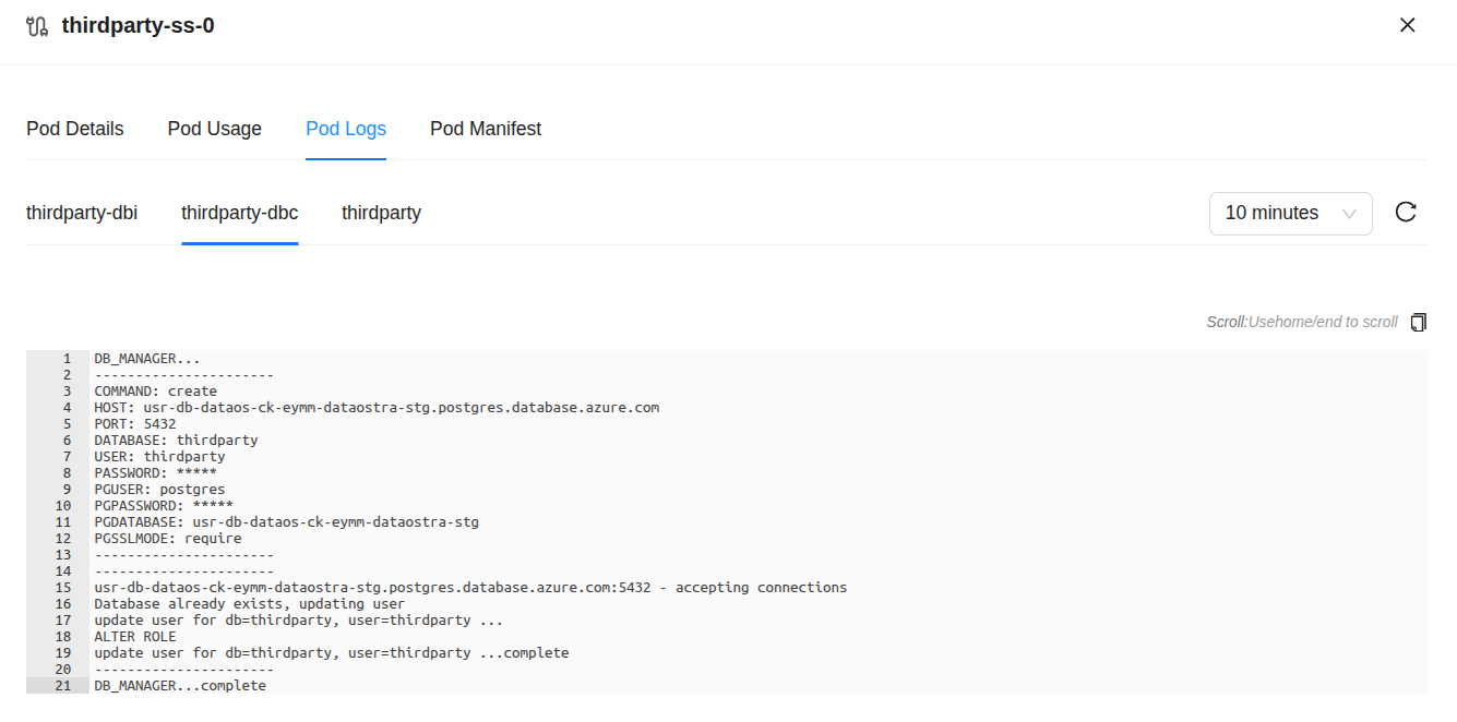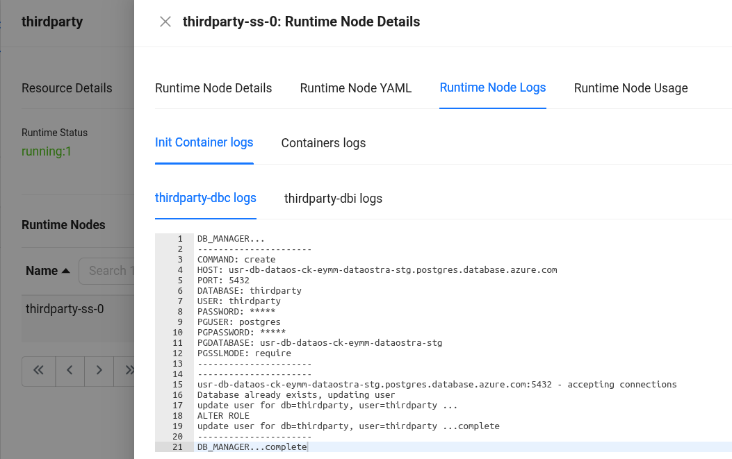 Click on the pod and navigate to the βPod Logsβ section. In the βPog Logsβ section, users can monitor the logs of the init and main containers.