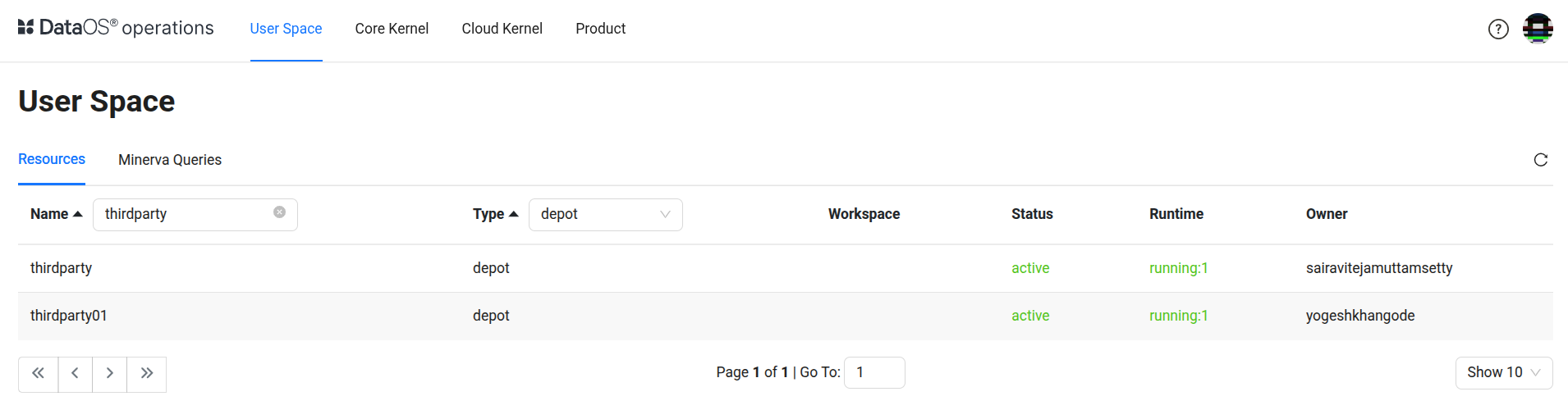 Navigate to User Space β Resources β Depot and search for the Depot by name.