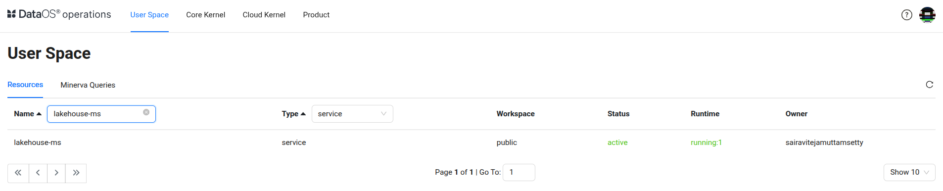 Navigate to User Space β Resources β Service and search for the Service by name.