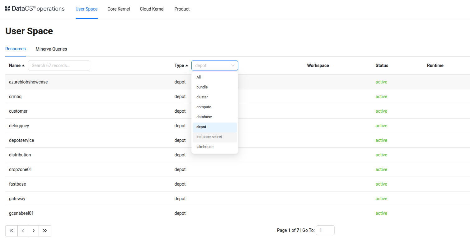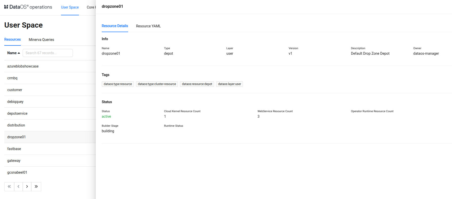 When a user clicks on a specific Depot, they can also track the aggregated status along with the runtime, which applies only to the object storage Depots.