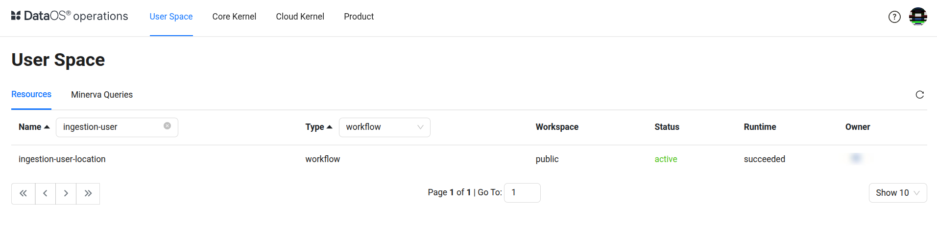 NAME | VERSION | TYPE | WORKSPACE | STATUS | RUNTIME | OWNER
